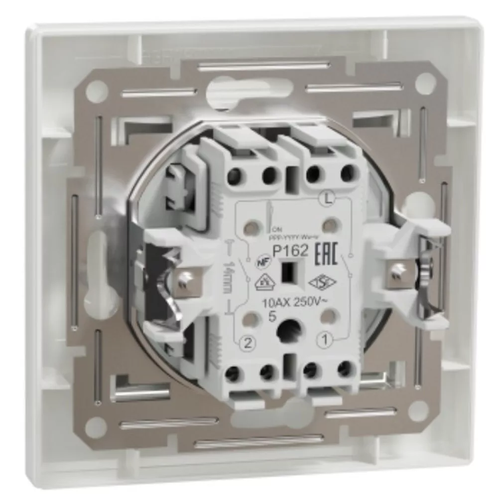 Schneider Asfora Csillárkapcsoló bekötési ábrája minden betét hátoldalán látható, ami segít elkerülni a hibás bekötéseket. A csatlakozási pontok biztonságos kialakításának köszönhetően maximális érintésvédelmet nyújtanak a szerelvények. Schneider Asfora Csillárkapcsoló tölcsér alakú bevezetések a csupaszolt vezeték teljes hosszát védik, ezáltal megakadályozzák a rövidzárlat kialakulását. A rögzítőkörmök végei műanyag bevonattal ellátottak, a sérülések elkerülése érdekében.