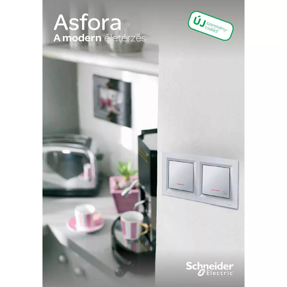 Az Asfora család a Schneider Elektric megszokott, kiváló minőségét kínálja. A galvanizált fém rögzítőkeretek kiváló rugalmasságot és korrózióállóságot biztosítanak. A hosszú és erős rögzítőkörmök többszöri fel és leszerelés után is tökéletes rögzítést biztosítanak.