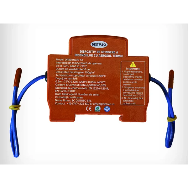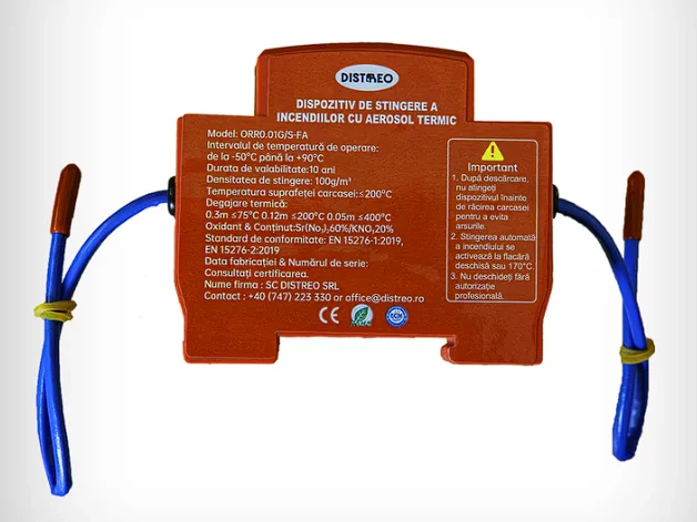 - Jelentős hőmérséklet-emelkedés észlelésekor vagy aktiváláskor (a konfigurációtól függően) az aeroszolos szer gyorsan felszabadul a védett térfogatba, inert felhőt képezve, amely lehűti , hígítja az oxidálószereket és megszakítja az égési reakciókat . A hatás másodperceken belül bekövetkezik, korlátozva a berendezések károsodását és állásidejét.