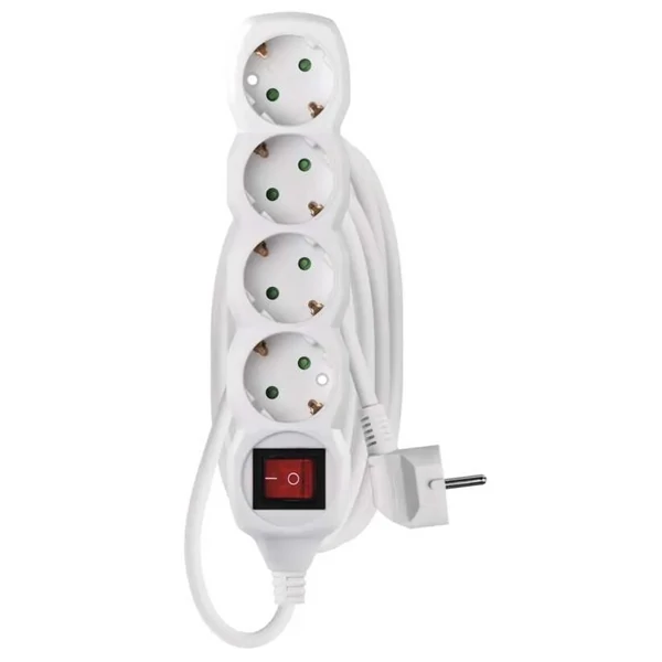 Hosszabbító 3 m / 4 aljzat / kapcsolós / fehér / PVC / 1,5 mm2