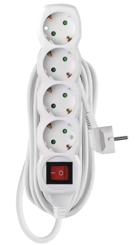 Hosszabbító 5 m / 4 aljzat / kapcsolós / fehér / PVC / 1,5 mm2