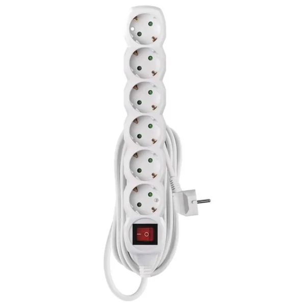 Hosszabbító 5 m / 6 aljzat / kapcsolós / fehér / PVC / 1,5 mm2