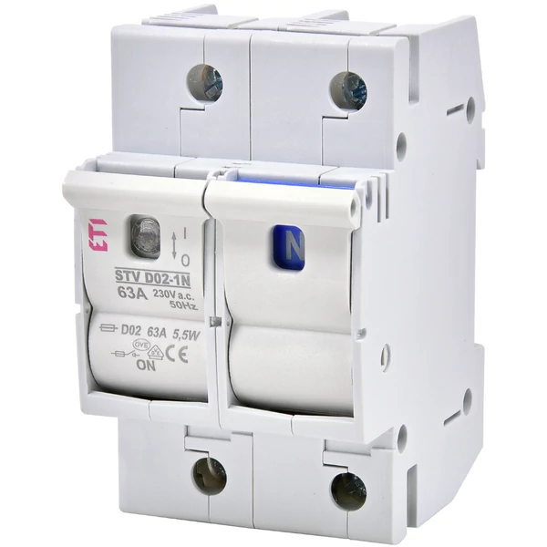 A ETI 002271002 STV D02 biztosítós leválasztó kapcsoló egy egypólusú és nulla pólusú, moduláris kivitelű készülék, amelyet 63 A névleges áramerősséggel és 230/400 V váltóáramú rendszerekhez terveztek. A készülék AC-22A alkalmazási kategóriával rendelkezik, ami azt jelenti, hogy alkalmas terhelés alatti kapcsolásra is. A szerelése egyszerű, mivel DIN 35 mm-es sínre történik, és mindössze 3 modul szélességű, így szabványos elosztószekrényekbe könnyen integrálható. A termék a D02 méretű biztosítékokkal kompatibilis, és megfelel az IEC/EN 60947-3 szabványnak. Az ETI 002271002 modell elsősorban olyan alkalmazásokhoz ajánlott, ahol fontos a megbízható leválasztás és a terhelés alatti kapcsolás biztosítása.