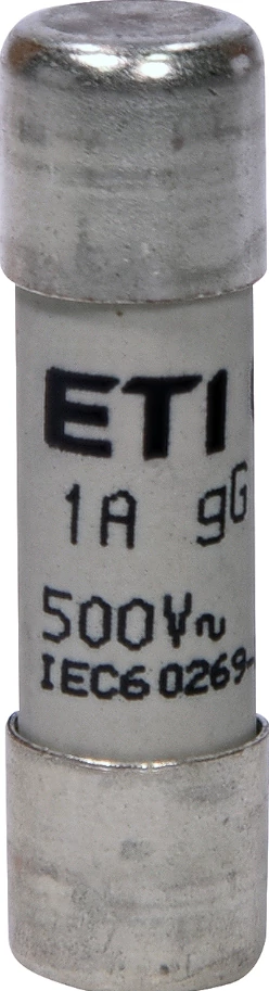 A ETI 002651012 hengeres olvadóbetét 10×38 mm méretű, 1 A‑es névleges áramú, gG karakterisztikájú biztosítóbetét. Névleges váltakozó áramú feszültsége 500 V, megszakítóképessége 120 kA. A készülék kerámiaházas, teljes körű (vezeték‑ és berendezés‑) védelmet nyújt a szabványos alkalmazásokban, megfelel az IEC 60269‑1 és IEC 60269‑2 szabványoknak. A névleges áramhoz tartozó hővesztesége kb. 0,45 W, így a komponens jellemzően olyan rendszerekben használható, ahol kompakt méretű és megbízható túláram‑védelem szükséges.