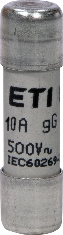 A ETI 002651017 CH10×38 gG 10 A/500 V típusú biztosítóbetét egy 10 × 38 mm-es hengeres kerámiaházas olvadóbiztosító, amelynek névleges árama 10 A és névleges váltakozófeszültsége 500 V. A karakterisztikája „gG”, ami azt jelenti, hogy teljes körű védelmet nyújt mind vezetékeknek, mind berendezéseknek. Megszakítóképessége váltakozó áram esetén 120 kA, hővesztesége névleges áram mellett 1,3 W, és az alkalmazására jellemző használat vezetékvédelem céljára. A termék megfelel az IEC 60269-1 és IEC 60269-2 szabványoknak.