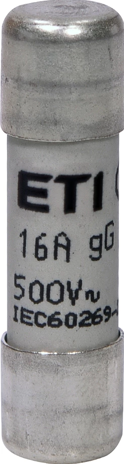 A ETI 002651019 jelzésű biztosítóbetét egy hengeres kerámiaházas típus, mérete 10×38 mm, névleges áramértéke 16 A, és gG karakterisztikájú, ami azt jelenti, hogy általános hálózati és vezetékvédelmi célokra alkalmazható. Névleges váltakozó feszültsége 500 V, megszakítóképessége váltakozó áramú oldalon 120 kA, és hővesztesége névleges áram mellett kb. 1,9 W. A termék az IEC 60269-1 és IEC 60269-2 szabványoknak megfelel.