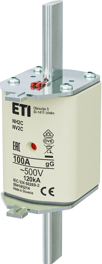Az ETI 004185214 NH2 típusú biztosítóbetét 100 amperes névleges áramerősségű, gL-gG jelleggörbéjű, általános célú késes biztosító. Legfeljebb 500 volt váltakozó feszültségű hálózatokban használható elektromos berendezések és áramkörök túláramvédelmére. A biztosító a vezetékek és készülékek védelmét szolgálja túlterhelés vagy rövidzárlat esetén, megbízható működést biztosít ipari és energiaelosztó rendszerekben. Az NH2 méret a szabványos késes kivitelre utal, amely kompatibilis a megfelelő biztosítótartókkal és foglalatokkal.