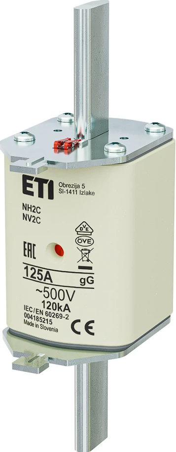 Az ETI 004185215 NH2 típusú biztosítóbetét 125 amperes névleges áramerősségű, gL-gG jelleggörbéjű, általános célú késes biztosító. Legfeljebb 500 volt váltakozó feszültségű hálózatokban alkalmazható, ahol az elektromos berendezések és áramkörök védelme szükséges túlterhelés vagy rövidzárlat ellen. A biztosító megbízható működést biztosít ipari és energiaelosztó rendszerekben. Az NH2 méret szabványos kialakítású, kompatibilis a megfelelő biztosítótartókkal és foglalatokkal.