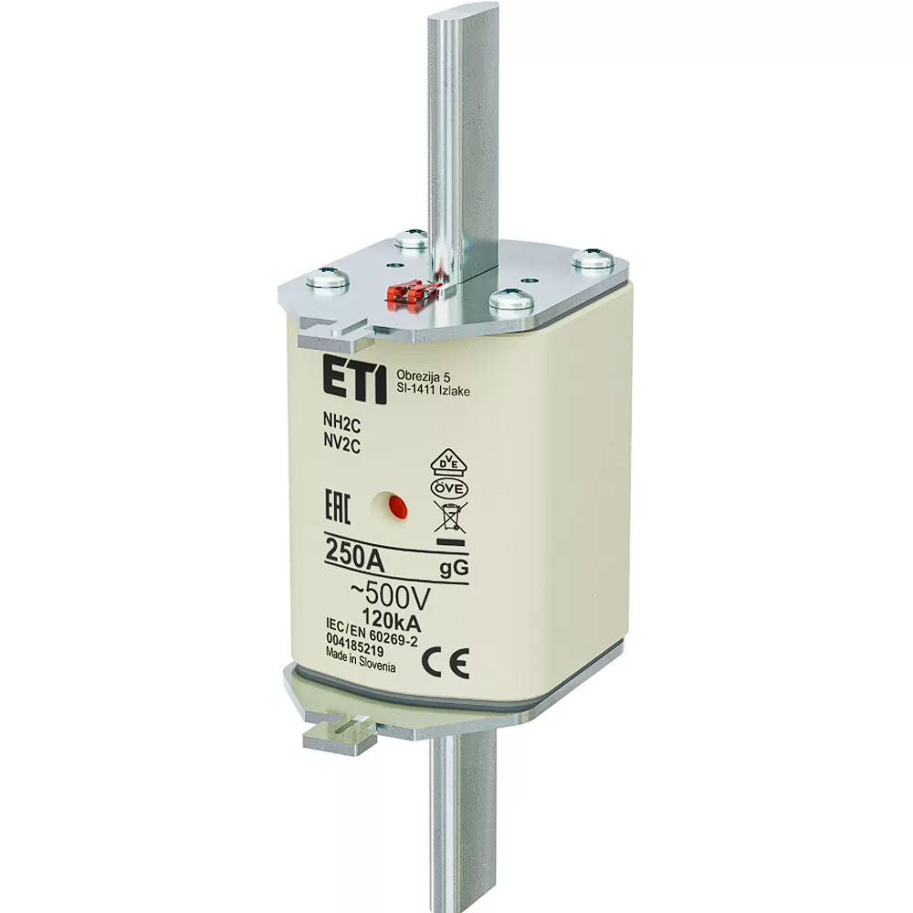 Az ETI 004185219 NH2 típusú biztosítóbetét 250 amperes névleges áramerősségű, gL-gG jelleggörbéjű, általános célú késes biztosító. Legfeljebb 500 volt váltakozó feszültségű hálózatokban használható elektromos berendezések és áramkörök túláram- és rövidzárlatvédelmére. A biztosító megbízható védelmet biztosít ipari és energiaelosztó rendszerekben. Az NH2 méret szabványos kialakítású, ezért kompatibilis a megfelelő biztosítótartókkal és foglalatokkal.
