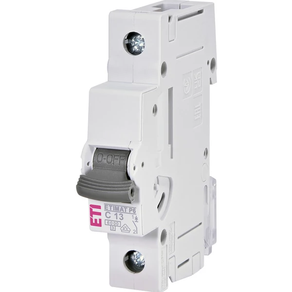 Az ETI 1900029 ETIMAT P6 C13A 1P 6 kA egy egypólusú (1 modul szélességű) kismegszakító, amelyet egyfázisú AC hálózatok védelmére terveztek. A készülék névleges áramfelvétele 13 amper, és C karakterisztikájú, ami azt jelenti, hogy késleltetve lép működésbe kisebb túlterhelések esetén, így jobban bírja az indításkor fellépő nagyobb áramcsúcsokat (például motorok esetén). A megszakító rövidzárlati lekapcsolási képessége 6 kA, vagyis ilyen nagyságrendű zárlati áramnál képes biztonságosan megszakítani az áramkört. A DIN sínre szerelhető kialakítása révén moduláris rendszerben integrálható elektromos elosztókban, és megfelel a nemzetközi szabványok előírásainak a megbízható működés biztosítása érdekében.