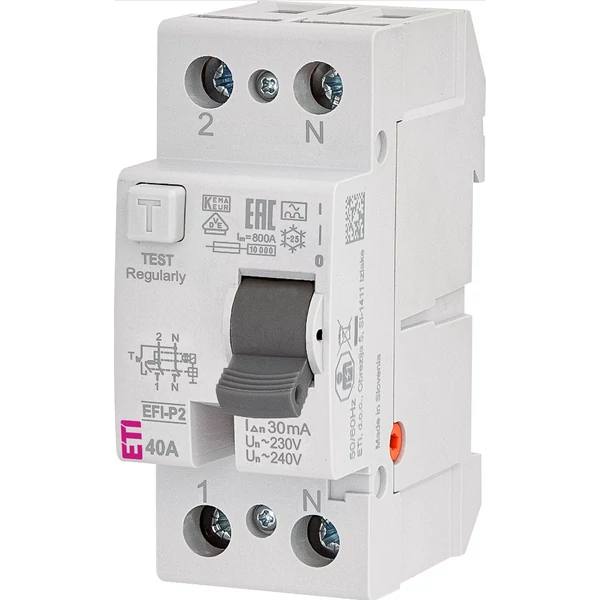Az ETI 2061112 EFI-P2 A 40A 30mA áram-védőkapcsoló kétpólusú készülék, amely 40 amper névleges áramerősséget és 30 milliamper érzékenységet biztosít. Képes váltóáramú és pulzáló hibaáramok érzékelésére, és azonnali kioldással működik a biztonságos áramellátás érdekében. Elsősorban villamos hálózatokban alkalmazzák a személyek és berendezések védelmére, megelőzve az áramütés és a túláram okozta károkat. Robusztus kivitele és megbízható működése hosszú távú biztonságot nyújt a hálózat számára.