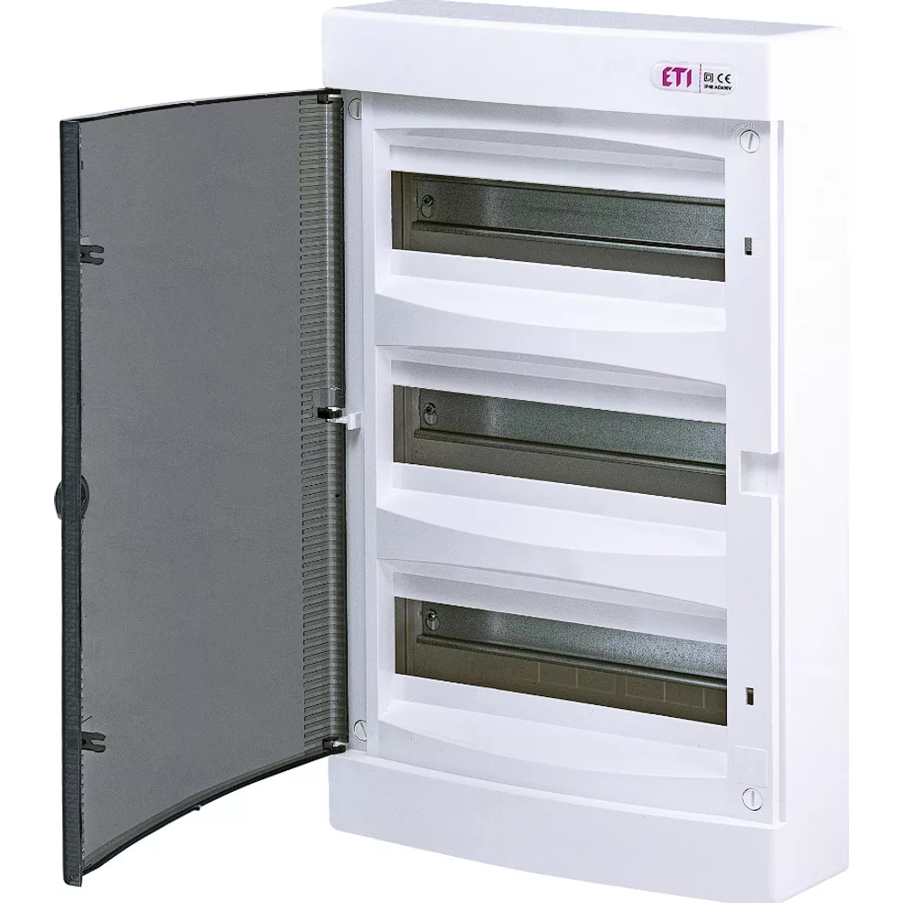 Az ETI ECT36PT DIDO-E egy falra szerelhető elosztó szekrény, amely átlátszó ajtóval rendelkezik, így egyszerűen ellenőrizhető a belső elrendezés. A 3x12 modul kapacitás lehetővé teszi több áramkör rendszerezett elhelyezését, miközben a kialakítás átlátható és praktikus marad. Strapabíró anyagokból készült, hosszú távú védelmet biztosít a biztosítékok és kapcsolók számára. A telepítés egyszerű, minden rögzítési pont biztosított, és a modern, letisztult dizájn esztétikus megjelenést kölcsönöz a helyiségnek.