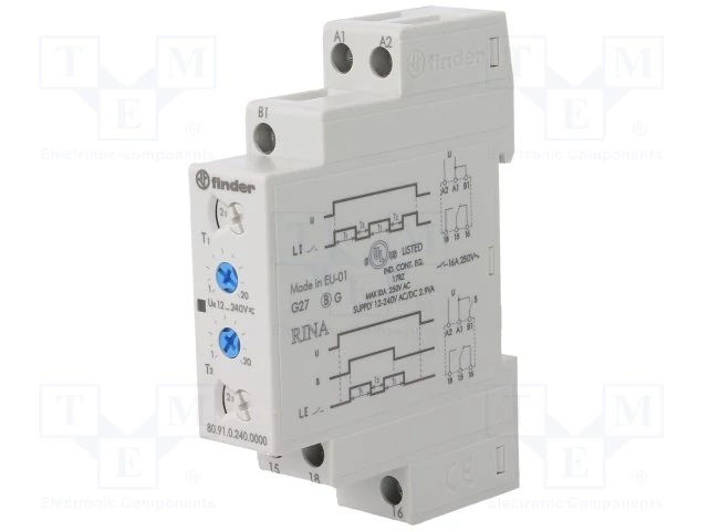 80.91-es típusú egy funkciós, többfeszültségű moduláris időrelé, aszimmetrikus ütemadó relé.