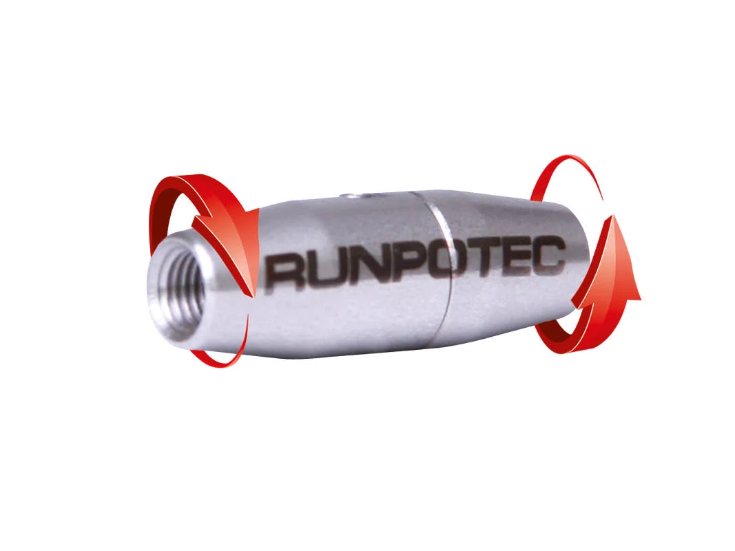 A forgócsukló rozsdamentes acélból készült. Két Ø 4,5 mm vagy 6 mm-es üvegszálas rúd összekötésére vagy meghosszabbítására használható. RUNPOTEC RTG Ø 6 mm menet. Azonban a RUNPOTEC Ø 7,5 mm, 9 mm, 11 mm vagy 15 mm átmérőjű, kis méretű, Ø 4,5 mm vagy 6 mm-es üvegszálas rudak is csatlakoztathatók vagy meghosszabbíthatók. A forgócsukló a funkcionális siklóval vagy a RUNPOTEC RC 2 ellenőrző kamerával kombinálva is nagyon praktikus.