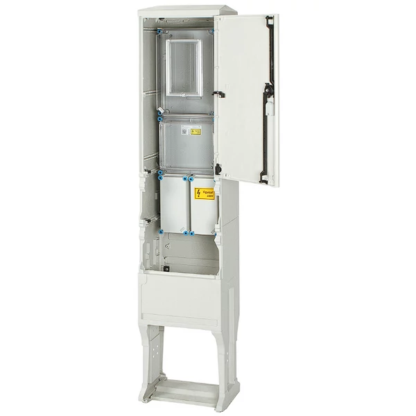 - A szerkezet tartalmaz egy szerelőlappalhent, amely megkönnyíti a fogyasztásmérő és a kiegészítő berendezések szakszerű, biztonságos rögzítését. Az elosztószekrény burkolata időjárásálló, fokozottan ellenáll a nedvességnek, pornak és a külső mechanikai hatásoknak, így kültéri telepítésre is alkalmas. Az érintésvédelmi szempontoknak megfelelő kialakítás garantálja a felhasználók biztonságát, miközben a hálózati energiaelosztás stabilitását is biztosítja.