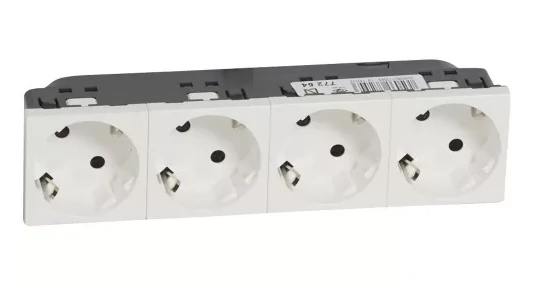 - Többszörös csatlakozóaljzatok - Német szabvány - Beépítéshez süllyesztett szerelődobozba, felületre - szerelődobozba, padlódobozba, oszlopmodulba, asztali többkimenetes bővítőbe és irodai modulba - 45°-ban döntött - IK 07 - Csatlakozás automata csatlakozókkal 4 x 2P+E - Fehér