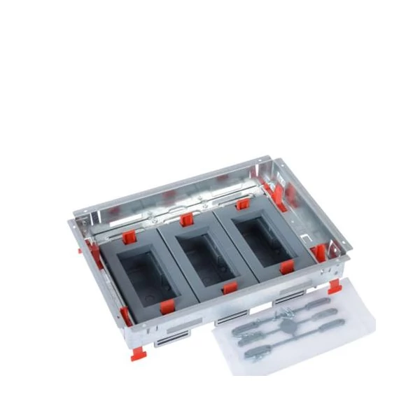- Három méretben elérhető univerzális termékcsalád, amely bármilyen padlóhoz (emelt padló, esztrich padló) illeszkedik, és bővíthető, mivel a közös vezetékezési eszközök támasztékai vannak felszerelve (a szabványos padlódoboz az elektromos csatlakozások érintése nélkül süllyesztetté válhat).