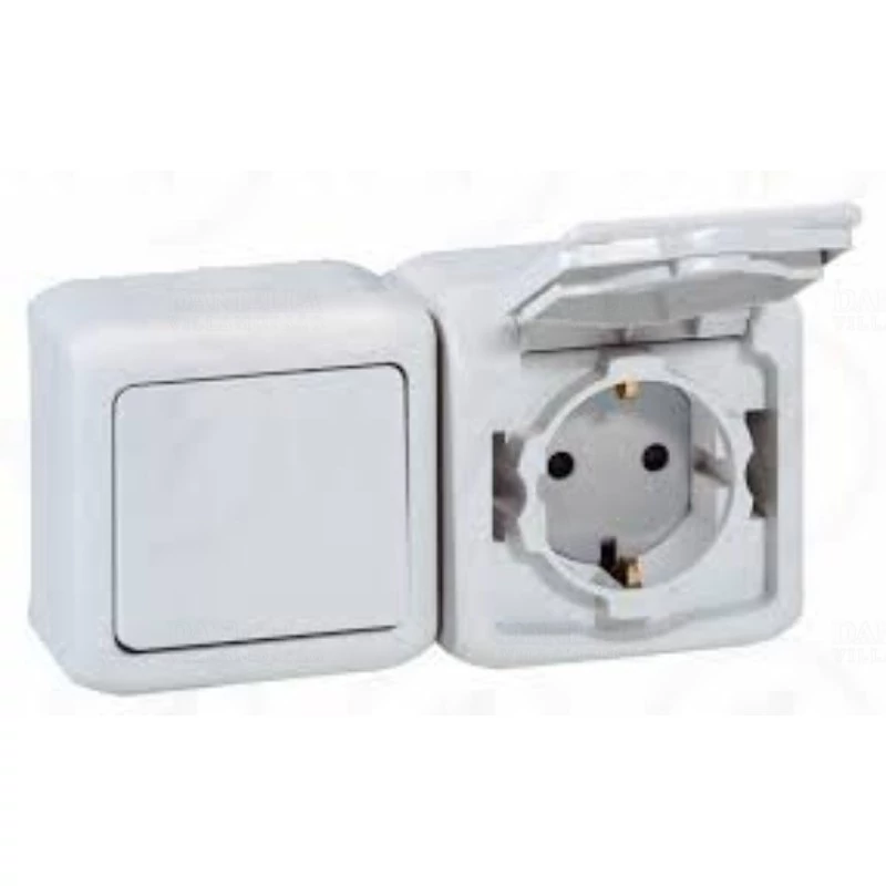 Forix IP44 fk 1P kapcsoló + 2P+F csatlakozóaljzat, csapófedéllel, gyv, fehér