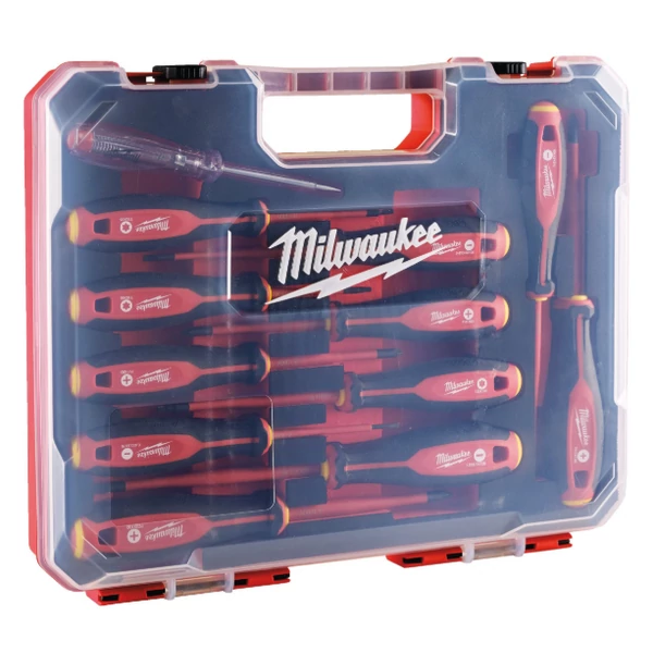 MILWAUKEE 4932479095 VDE Csavarhúzó 3 oldalú markolattal  12 darabos készlet (SL2.5 / SL3 / SL4 / SL5.5 / PH1 / PH2 / PZ1 / PZ2 / T10 / T15 / T20)
