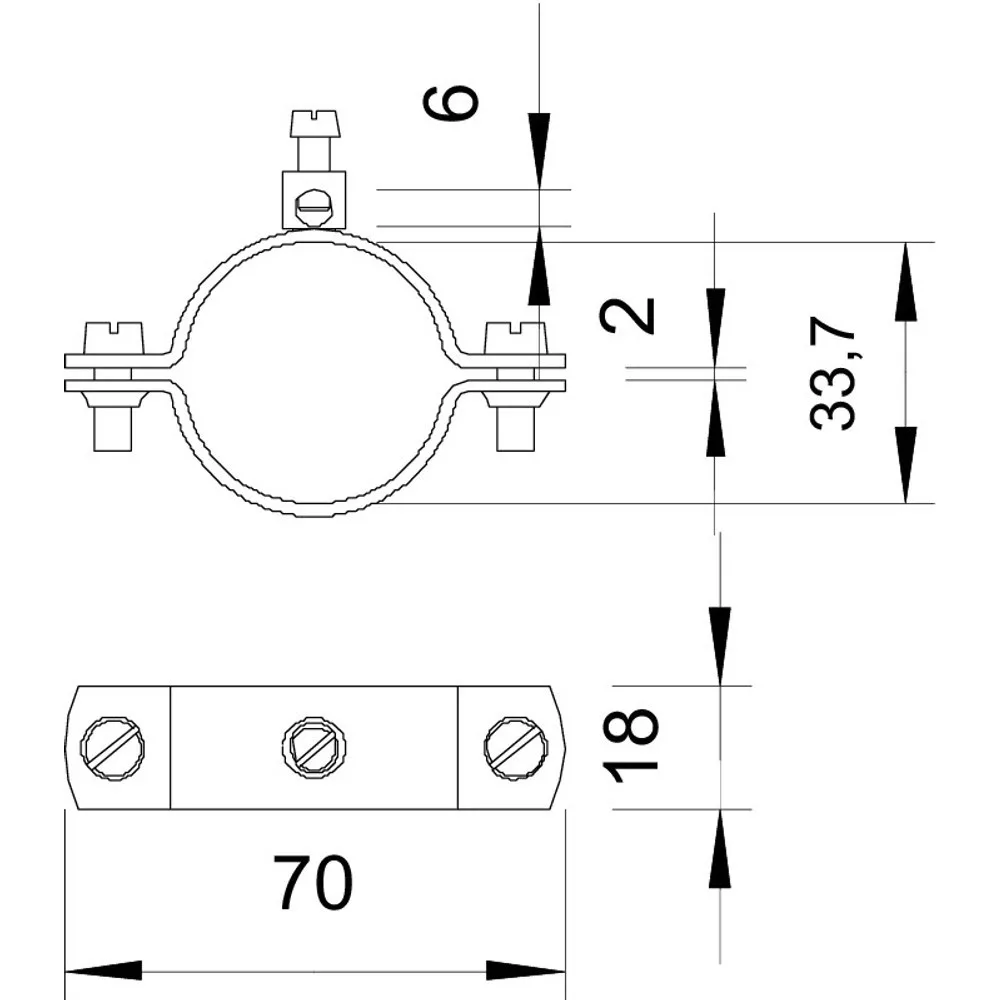 - 1/4 - 1 1/2 coll méretű, illetve Ø 11,5-48,3 mm csövekhez, 2 db M6 x 16 hengerfejű csavarral (G)