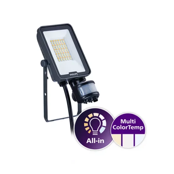 Ledinaire All-in reflektorok, Alumíniumöntvény, Szürke, Közlekedési szürke B (RAL7043), Egyrétegű porbevonat, Tápegység (Be/Ki), Mozgás- és fényérzékelő (Be/Ki), Fotocella tartozék, All-in, Több színhőmérséklet, 2200 lm, 2400 lm, 20 W, 120 lm/W, 110 lm/W, 3000 K, 4000 K, 6500K, (0,440,0,403); (0,369,0,364); (0,313,0,337) SDCM<5, CRI80, Szimmetrikus, IP65 | Porbehatolás elleni védelem, vízsugár elleni védelem, IK07 | 2 J erősítésű, I. biztonsági osztály, Lámpatest túlfeszültség-védelmi szintje akár 1,5 kV differenciálmódusig és 1,5 kV közös módusig, 1,0 m kábel csatlakozó nélkül, Szabad vezetékek/kábelek