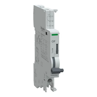 Ismerje meg az Easy9 Pro OF nyitás/zárás segédérintkezőt, az Easy9 Pro kismegszakítóhoz. Ez az eszköz nyitott/zárt érintkezővel rendelkezik, és távolról jelezheti a társított eszköz BE/KI helyzetét. Emellett az előlapján egy tesztfunkciót is tartalmaz A termék megfelel az MSZ/EN 60947-5-1 szabványoknak. Az Un névleges feszültsége 24-415 V~ vagy 24-130 V egyenáram, és 50/60 Hz frekvencián működik. Az In névleges üzemi áram a feszültségtől függően 100 mA és 6 A között van. Szélessége 18 mm-es modulszélességben 0,5. Az Easy9 Pro termékcsalád kialakítása révén könnyen illeszkedik a különböző alkalmazásokhoz és projekttípusokhoz. A biztonsági jelzőktől és a tervezési jellemzőktől kezdve a masszív rövidzárlatvédelemig, megbízhatóságot biztosít a berendezések számára, és rugalmasságot az Ön igényeinek megfelelően.