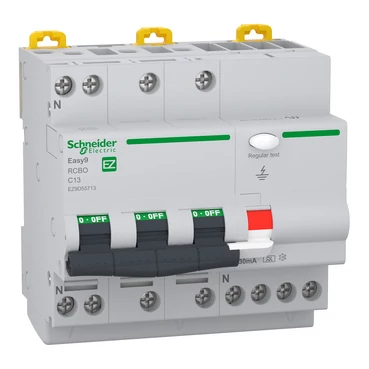 A SCHNEIDER EZ9D55713 EASY9 PRO egy áramvédős kismegszakító, amelyet 6 kA zárlati megszakítóképességgel és A osztályú érzékenységgel terveztek. Ez a készülék 3 fázis és nulla vezető kombinációjával (3P+N) rendelkezik, és C karakterisztikájú kioldási görbével működik, ami ideálissá teszi kis- és közepes induktív terhelések, például motorok és világítási rendszerek védelmére. A névleges áramerőssége 13 amper, a beépített maradékáram-védelmi (RCD) funkció pedig 30 mA érzékenységgel rendelkezik, ami hatékony védelmet nyújt áramütés és szivárgó áram okozta veszélyek ellen. Az eszköz DIN sínre szerelhető, és megfelel az EN 61009-1 szabványnak, ami biztosítja a megbízható működést és a szabványosított telepítést. Az EASY9 PRO sorozat részeként ez a kismegszakító kiváló választás lakossági és könnyű ipari alkalmazásokhoz, ahol fontos a túláram, rövidzárlat és áramütés elleni védelem.