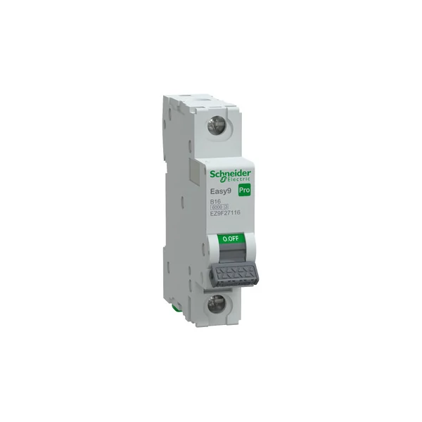 Az Easy9 Pro 1P 16A kisfeszültségű kismegszakítóval optimális védelmet élvezhet rövidzárlatokkal és túlterhelési áramokkal szemben. B kioldási görbével és 6000 A-ig terjedő névleges rövidzárlati megszakítóképességgel rendelkezik. Ui névleges szigetelési feszültsége 500 V~, Uimp névleges lökő-feszültsége 4 kV. Megfelel az MSZ/EN 60898-1 szabványnak. A készüléken zöld sáv található, amely az érintkezők fizikai nyitott állapotát jelzi. Ez a készülék elszigetelésre alkalmas. Lehetővé teszi a biztonságos működtetést a terhelésoldali áramkörön. A megbízhatóság jegyében a készülék mechanikai tartóssága legfeljebb 20000 ciklus, elektromos tartóssága pedig legfeljebb 10000 ciklus. Moduláris telepítéshez a készülék DIN sínre szerelhető. A szennyezettségi fok 3. Energiakorlátozási osztálya 3. osztály. A szekrényben IP20 és IP40 védettségi fokozatú. Az üzemi hőmérséklet -30-70°C. Az Easy9 Pro termékcsalád kialakítása révén könnyen illeszkedik a különböző alkalmazásokhoz és projekttípusokhoz. A biztonsági jelzőktől és a tervezési jellemzőktől kezdve a masszív rövidzárlatvédelemig, megbízhatóságot biztosít a berendezések számára, és rugalmasságot az Ön igényeinek megfelelően.