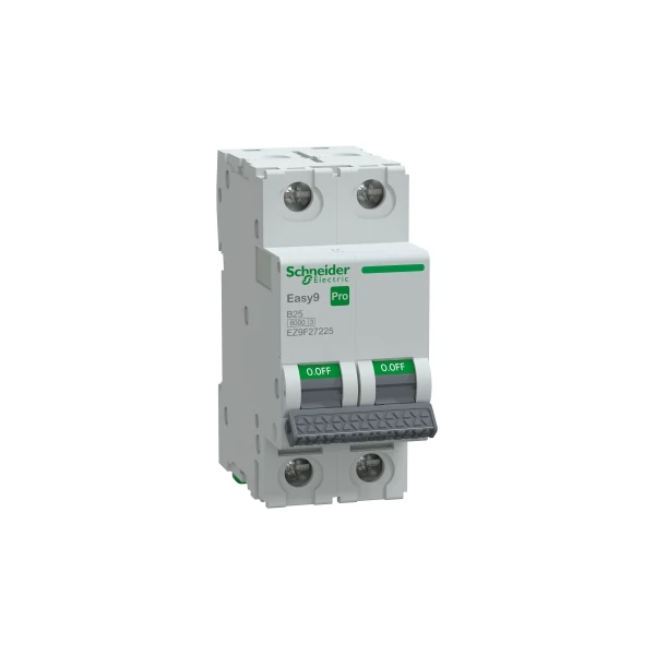 Az Easy9 Pro 2P 25A kisfeszültségű kismegszakítóval optimális védelmet élvezhet rövidzárlatokkal és túlterhelési áramokkal szemben. B kioldási görbével és 6000 A-ig terjedő névleges rövidzárlati megszakítóképességgel rendelkezik. Ui névleges szigetelési feszültsége 500 V~, Uimp névleges lökő-feszültsége 4 kV. Megfelel az MSZ/EN 60898-1 szabványnak. A készüléken zöld sáv található, amely az érintkezők fizikai nyitott állapotát jelzi. Ez a készülék elszigetelésre alkalmas. Lehetővé teszi a biztonságos működtetést a terhelésoldali áramkörön. A megbízhatóság jegyében a készülék mechanikai tartóssága legfeljebb 20000 ciklus, elektromos tartóssága pedig legfeljebb 10000 ciklus. Moduláris telepítéshez a készülék DIN sínre szerelhető. A szennyezettségi fok 3. Energiakorlátozási osztálya 3. osztály. A szekrényben IP20 és IP40 védettségi fokozatú. Az üzemi hőmérséklet -30-70°C. Az Easy9 Pro termékcsalád kialakítása révén könnyen illeszkedik a különböző alkalmazásokhoz és projekttípusokhoz. A biztonsági jelzőktől és a tervezési jellemzőktől kezdve a masszív rövidzárlatvédelemig, megbízhatóságot biztosít a berendezések számára, és rugalmasságot az Ön igényeinek megfelelően.