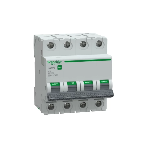 Tapasztalja meg az optimális védelmet rövidzárlatok és túlterhelési áramok ellen az Easy9 Pro 4P 20A kisfeszültségű kismegszakítóval. B kioldási görbével és 6000 A-ig terjedő névleges rövidzárlati megszakítóképességgel rendelkezik. Ui névleges szigetelési feszültsége 500 V~, Uimp névleges lökő-feszültsége 4 kV. Megfelel az MSZ/EN 60898-1 szabványnak. A készüléken zöld sáv található, amely az érintkezők fizikai nyitott állapotát jelzi. Ez a készülék elszigetelésre alkalmas. Lehetővé teszi a biztonságos működtetést a terhelésoldali áramkörön. A megbízhatóság jegyében a készülék mechanikai tartóssága legfeljebb 20000 ciklus, elektromos tartóssága pedig legfeljebb 10000 ciklus. Moduláris telepítéshez a készülék DIN sínre szerelhető. A szennyezettségi fok 3. Energiakorlátozási osztálya 3. osztály. A szekrényben IP20 és IP40 védettségi fokozatú. Az üzemi hőmérséklet -30-70°C. Az Easy9 Pro termékcsalád kialakítása révén könnyen illeszkedik a különböző alkalmazásokhoz és projekttípusokhoz. A biztonsági jelzőktől és a tervezési jellemzőktől kezdve a masszív rövidzárlatvédelemig, megbízhatóságot biztosít a berendezések számára, és rugalmasságot az Ön igényeinek megfelelően.