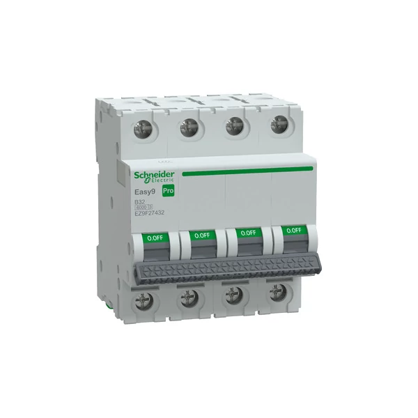 Tapasztalja meg az optimális védelmet rövidzárlatok és túlterhelési áramok ellen az Easy9 Pro 4P 32A kisfeszültségű kismegszakítóval. B kioldási görbével és 6000 A-ig terjedő névleges rövidzárlati megszakítóképességgel rendelkezik. Ui névleges szigetelési feszültsége 500 V~, Uimp névleges lökő-feszültsége 4 kV. Megfelel az MSZ/EN 60898-1 szabványnak. A készüléken zöld sáv található, amely az érintkezők fizikai nyitott állapotát jelzi. Ez a készülék elszigetelésre alkalmas. Lehetővé teszi a biztonságos működtetést a terhelésoldali áramkörön. A megbízhatóság jegyében a készülék mechanikai tartóssága legfeljebb 20000 ciklus, elektromos tartóssága pedig legfeljebb 10000 ciklus. Moduláris telepítéshez a készülék DIN sínre szerelhető. A szennyezettségi fok 3. Energiakorlátozási osztálya 3. osztály. A szekrényben IP20 és IP40 védettségi fokozatú. Az üzemi hőmérséklet -30-70°C. Az Easy9 Pro termékcsalád kialakítása révén könnyen illeszkedik a különböző alkalmazásokhoz és projekttípusokhoz. A biztonsági jelzőktől és a tervezési jellemzőktől kezdve a masszív rövidzárlatvédelemig, megbízhatóságot biztosít a berendezések számára, és rugalmasságot az Ön igényeinek megfelelően.