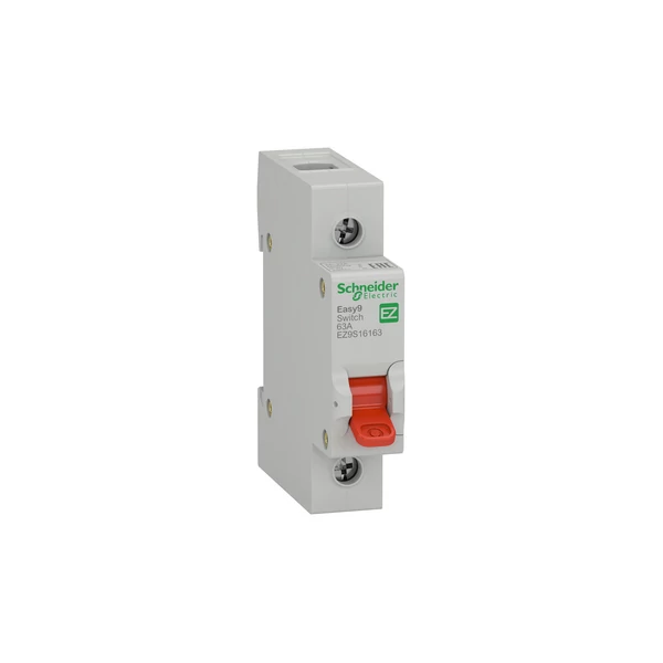 Ez a termék egy Easy9 moduláris szakaszolókapcsoló. Ezzel a szakaszolókapcsolóval vezérelhetők az áramkörök (terhelés alatti nyitás és zárás). Ezt a terméket a túlterhelés és rövidzárlat ellen már védett terhelési elektromos áramkörök leválasztására is használják. Az MSZ 60947-3 szabvány szerinti leválasztásra alkalmas pozícióérintkező jelzéssel rendelkezik. Ez az 1P szakaszolókapcsoló 63A névleges áramerősséggel rendelkezik. Az elektromos élettartam 1500 ciklus, a mechanikai élettartam pedig 8500 ciklus. Az Ue névleges üzemi feszültsége 230 V~. Az Ui névleges szigetelési feszültség 500 V~. Uimp névleges lökő-feszültsége 4 kV. Az üzemi frekvencia 50 Hz vagy 60 Hz. A terméket DIN sínre lehet felszerelni. Szélessége 1 modul (18 mm-es osztásban). A méret (szélesség) 18mm × (magasság) 81mm × (mélység) 66.5mm. A színe világosszürke (RAL7035). Az MSZ 60529 szabvány szerint a szekrényben IP20 vagy IP40 védettségi fokozatú. A szennyezettségi fok NA. Az üzemi hőmérséklet -5 - 55°C. Tárolási hőmérséklet: -5 - 70 °C. A termék megfelel az MSZ 60947-3 szabványnak.