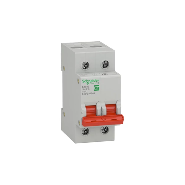 Ez a készülék egy Easy9 moduláris szakaszolókapcsoló. Ezzel a szakaszolókapcsolóval vezérelhetők az áramkörök (terhelés alatti nyitás és zárás). Ezt a terméket a túlterhelés és rövidzárlat ellen már védett terhelési elektromos áramkörök leválasztására is használják. Az MSZ 60947-3 szabvány szerinti leválasztásra alkalmas pozícióérintkező jelzéssel rendelkezik. Ez egy 2P szakaszolókapcsoló 40A névleges áramerősséggel. Az elektromos élettartam 1500 ciklus, a mechanikai élettartam pedig 8500 ciklus. Az Ue névleges üzemi feszültsége 400 V~. Az Ui névleges szigetelési feszültség 500 V~. Uimp névleges lökő-feszültsége 4 kV. Az üzemi frekvencia 50 Hz vagy 60 Hz. A terméket DIN sínre lehet felszerelni. Szélessége 2 modul (18 mm-es osztásban). A méret (szélesség) 36mm × (magasság) 81mm × (mélység) 66.5mm. A színe világosszürke (RAL7035). Az MSZ 60529 szabvány szerint a szekrényben IP20 vagy IP40 védettségi fokozatú. A szennyezettségi fok NA. Az üzemi hőmérséklet -5 - 55°C. Tárolási hőmérséklet: -5 - 70 °C. A termék megfelel az MSZ 60947-3 szabványnak.