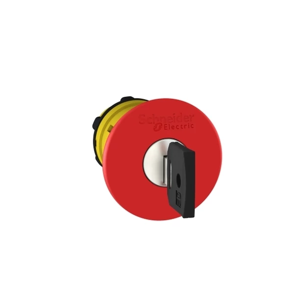 A SCHNEIDER ZB5AS944 Gomba nyomófej vészleállító 40mm piros reteszelt kulcsos nyugtázás egy vezérlő- és kezelőberendezésekhez tervezett piros színű vészleállító nyomófej. A 40 mm átmérőjű gomb biztosítja a könnyű és gyors működtetést, míg a kulcsos nyugtázó mechanizmus meggátolja a véletlen visszaállítást, így növeli a berendezések biztonságát. A reteszelési funkcióval a gomb benyomása után rögzül, és csak a kulccsal történő nyugtázás után engedi vissza a rendszert működési állapotba. Robusztus kialakítása és megbízható működése révén kiválóan alkalmazható ipari és automatizálási környezetekben, ahol fontos a biztonságos és jól látható vészleállítás lehetősége.