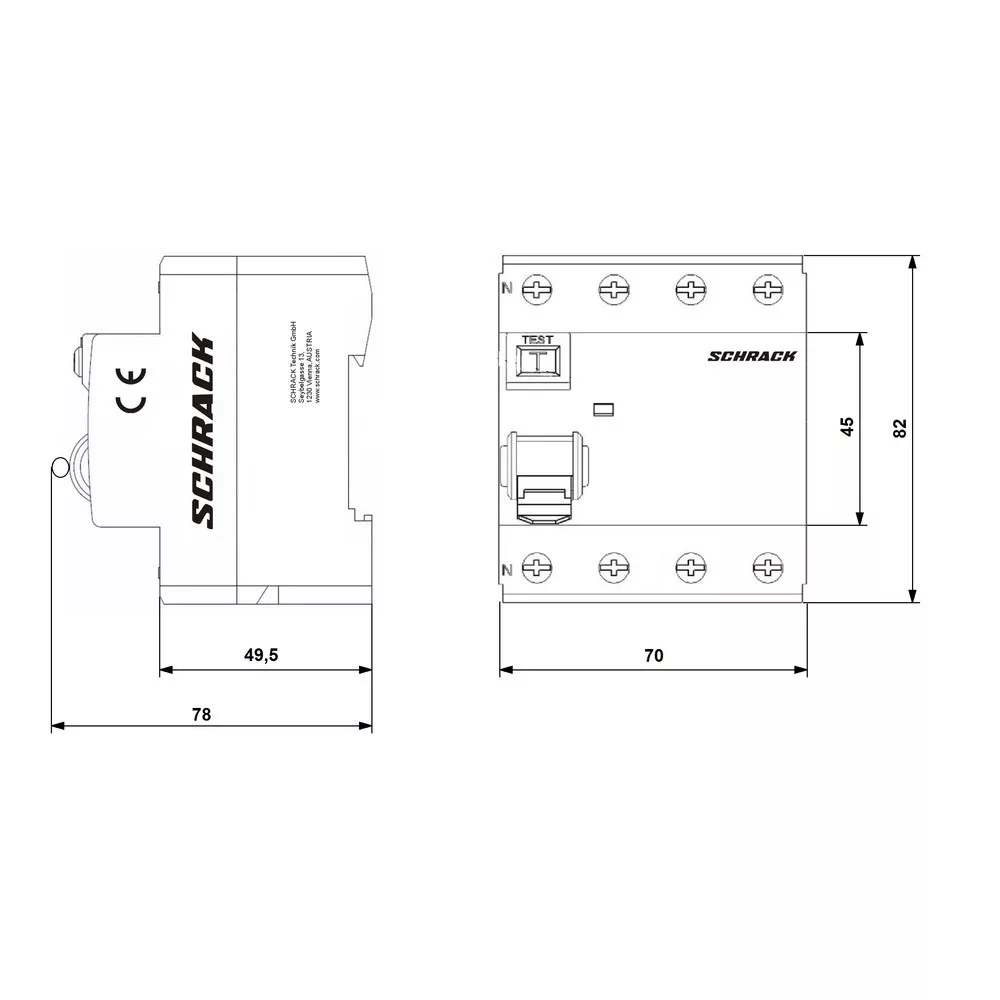 SCHRACK AR002103 Amparo Hibaáram kapcsoló 25A, AC 4 pólusú