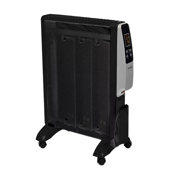 Ez a beltéri kivitelű konvektor MICA (lemezes szilikát ásvány) panelekkel rendelkezik, amelyek rendkívül gyorsan felmelegszenek és magas sugárzó hő arányt biztosítanak. Két fűtési fokozat közül választhat (1000 W és 1500 W), így mindig az igényeinek megfelelő hőmérsékletet érheti el. A digitális termosztát segítségével pontosan szabályozhatja a hőmérsékletet 18 és 30 °C között, míg a 12 órás kikapcsolás időzítő (0,5 órás egységekben) lehetőséget biztosít az energiatakarékos működésre.