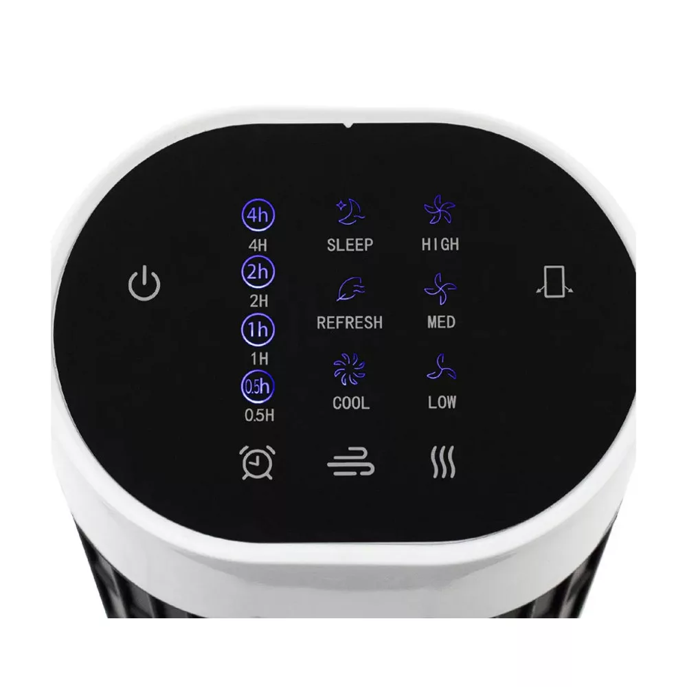 A nagy méretű kijelző könnyedén olvasható, így egyszerűen ellenőrizheti az aktuális beállításokat. A ventilátor érintőgombokkal és távirányítóval vezérelhető, ami maximális kényelmet biztosít, hiszen akár a kanapéról is szabályozhatja a készüléket. A kikapcsolás időzítés 0,5 és 7,5 óra között állítható, így Ön energiatakarékosan használhatja a készüléket, miközben nyugodtan pihenhet.