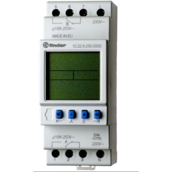 Elektronikus kapcsolóóra, kalapsínre heti programos, 2mod. 2 v érintkezős.