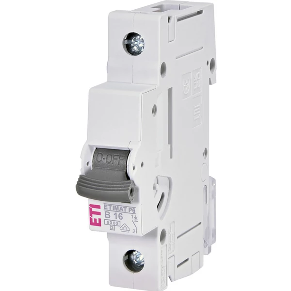Az ETI 1900010 ETIMAT P6 B16A 1P 6 kA egy egypólusú (1 modul szélességű) kismegszakító, amelyet az elektromos hálózatok védelmére terveztek túláram és rövidzárlat esetére. A névleges áram 16 amper, és a készülék B karakterisztikával rendelkezik, amely gyors kioldást tesz lehetővé kisebb túlterhelések esetén is. A megszakító maximális lekapcsolási képessége 6 kA, vagyis ennyi rövidzárlati áramot képes biztonságosan megszakítani. A típust szabványos 230/415 V feszültségű AC hálózatokra méretezték, és a kivitelezése lehetővé teszi DIN sínre szerelést.