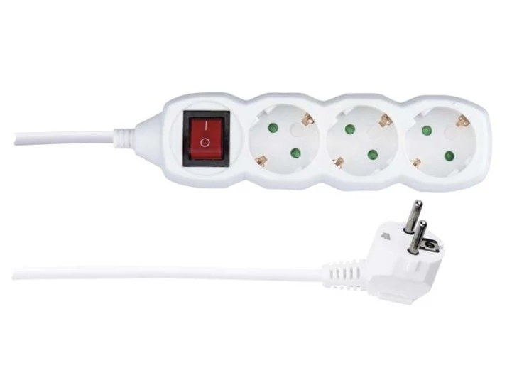 Hosszabbító kábel kapcsolóval. Konnektortól 3 m-es távolságban is megoldható az áramellátás 3 aljzatban.