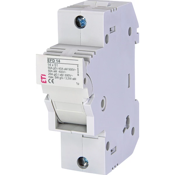 Az ETI 002560001 EFD 14 1P 14x51 1P biztosítós szakaszoló 50A egy egyfázisú, 50 amper névleges áramerősségű készülék, amely 14x51 milliméteres olvadóbiztosítékokhoz készült. Elsősorban ipari és villamos elosztórendszerekben használják az áramkörök védelmére és biztonságos leválasztására. Robusztus kialakítása és DIN-sínre szerelhetősége révén könnyen telepíthető és karbantartható. Megbízható megoldást kínál a túláramok elleni védelemhez, hozzájárulva a villamos berendezések biztonságos és stabil működéséhez.