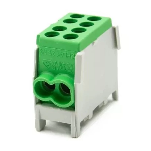 - Pollmann HLAK 25-1/2 1 pólusú, mini moduláris fővezetéki leágazókapocs, amely TS35 kalapsinre pattintható. A bekötésenkénti kétcsavaros rögzítés garantálja a megbízható összeköttetést még az egyik csavar meglazulása esetén is.