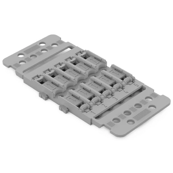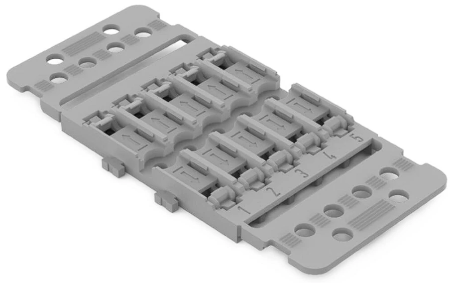 A WAGO 221‑2505 rögzítő adapter (5‑utas) olyan tartozék, amelyet a WAGO 221‑2411 típusú karos összekötőkhöz terveztek. Szürke színű, és csavaros rögzítési módot kínál, így stabilan rögzíthető szerelőfelületen. Beépített tehermentesítővel rendelkezik: a kábelhúzást egy kábelkötegelő segítségével lehet biztosítani, ezzel csökkentve a mechanikai terhelést az összekötőn. A fizikai méretei 47,8 mm szélesség, 6,5 mm magasság a rögzítési felülettől és 100 mm hosszúság. Származási országa Kína, valamint megfelel a RoHS környezetvédelmi előírásoknak.