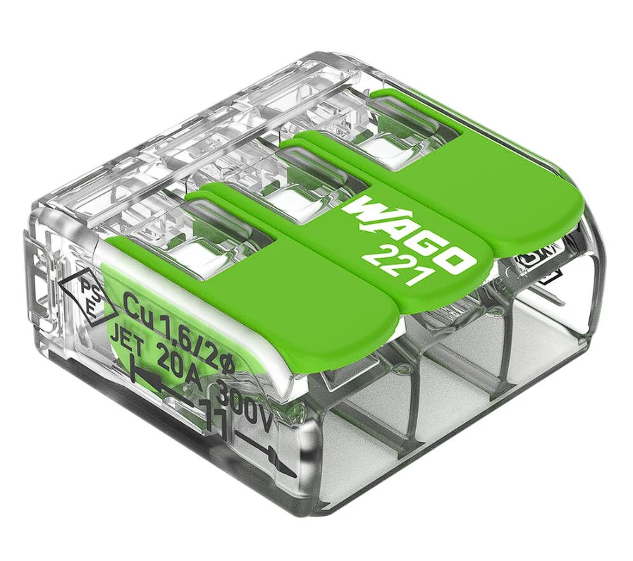 Karos toldócsatlakozónk (cikkszám: 221-423) egyszerű elektromos telepítést biztosít. Az interkom rendszerek bekötésétől az elektromos sütők telepítéséig a különböző vezetőtípusok csatlakoztatása gyors és egyszerű a WAGO kompakt 221-es sorozatú toldócsatlakozójával, amely lehetővé teszi a különböző típusú vezetők gyors és biztonságos csatlakoztatását. A vezetők karos toldócsatlakozóhoz való csatlakoztatásakor a szigetelés hosszának 11 mm-nek kell lennie. Ennek a toldócsatlakozónak a névleges feszültsége 450 V, és akár 32 A áramot is képes kezelni, így alkalmas nagy terhelésű alkalmazásokhoz. A CAGE CLAMP®-pal együtt a vezetékcsatlakozókkal ellátott termék megbízható teljesítményt nyújt. Megbízható és karbantartásmentes CAGE CLAMP® csatlakozásunkkal minden vezetőtípus egyszerűen csatlakoztatható anélkül, hogy a vezetőt elő kellene készíteni. Például nem kell préselni az érvéghüvelyeket. Méretek: (18,8 x 8,4 x 18,6) mm (szélesség x magasság x mélység). A vezető típusától függően a karos toldócsatlakozó ideális 0,2 mm² és 4 mm² közötti vezetőkeresztmetszetekhez. A WAGO 221-es sorozatú karos toldócsatlakozója lenyűgöző innovatív kialakításával rendelkezik a különböző vezetőkeresztmetszetek számára. Ezért a WAGO karos toldócsatlakozója egyedülálló védjegy az elektromos csatlakozástechnikában. A lapos karok, amelyek zökkenőmentesen illeszkednek a 221-es aljába, zárt állapotban öntvényként viselkednek, és zavaró élek nélkül, bármilyen házban szépen elhelyezhetők. Az egyes kilépők széles kialakításának köszönhetően mindegyik tökéletesen, szerszámok nélkül is működtethető a kényelmes vezeték-lekötés érdekében. Az átlátszó ház robusztus technológiát képvisel, és lehetővé teszi a tömör, sodrott és finom erezetű vezetők megfelelő érintkezésének azonnali vizuális ellenőrzését. A zongorabillentyűkre emlékeztető karok kialakítása tökéletesen ötvözi a funkcionális és esztétikus csatlakozási technológiát, a "Made by WAGO"-t.
