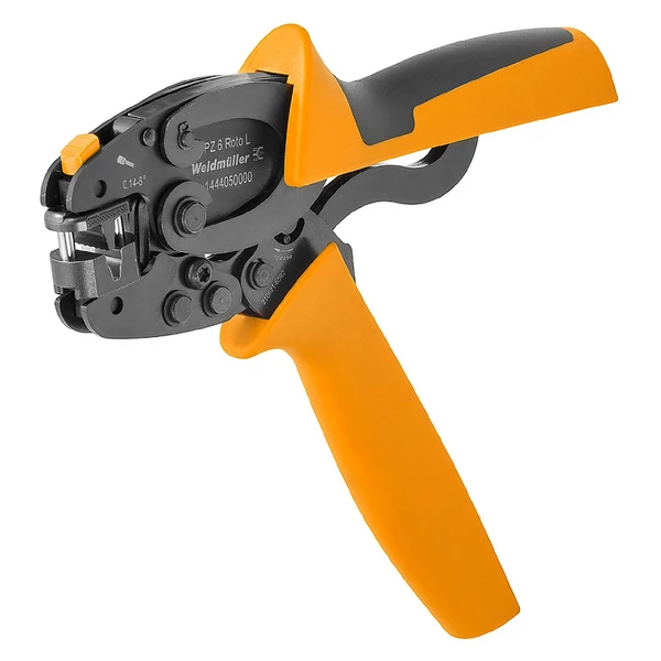 A WEIDMÜLLER 1444050000 PZ6-ROTO L érvéghüvely prés szerszám egy professzionális kézi krimpelő eszköz, amelyet kifejezetten szigetelt és szigeteletlen érvéghüvelyek biztonságos és megbízható préselésére terveztek. A szerszám ergonomikus kialakítása kényelmes munkavégzést tesz lehetővé, hosszabb használat során is csökkentve a kéz terhelését. A forgatható betétnek köszönhetően a krimpelési irány szabadon beállítható, ami megkönnyíti a munkát szűk helyeken is, és növeli a rugalmasságot a mindennapi szerelési feladatok során. A PZ6-ROTO L precíz mechanikája állandó és megbízható krimpelési minőséget biztosít, így ideális választás villanyszerelőknek, ipari szakembereknek és minden olyan felhasználónak, aki tartós és professzionális szerszámot keres az érvéghüvelyek feldolgozásához.